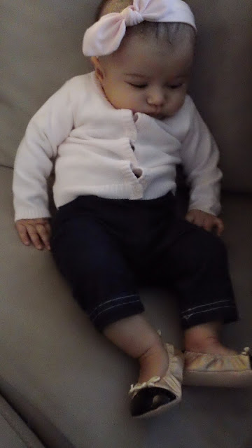 Oh-my-gosh!!! SO CUTE! this picture should be for a baby shoe ad!! she is mesmerized by her adorable shoes! she's a true girl who loves her fashionable shoes! =)